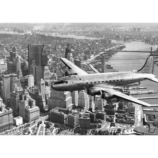 Flying over Manhattan, NYC Black Modern Wood Framed Art Print with Double Matting by Anonymous