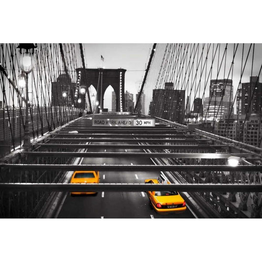 Taxi on Brooklyn Bridge, NYC Black Modern Wood Framed Art Print with Double Matting by Anonymous