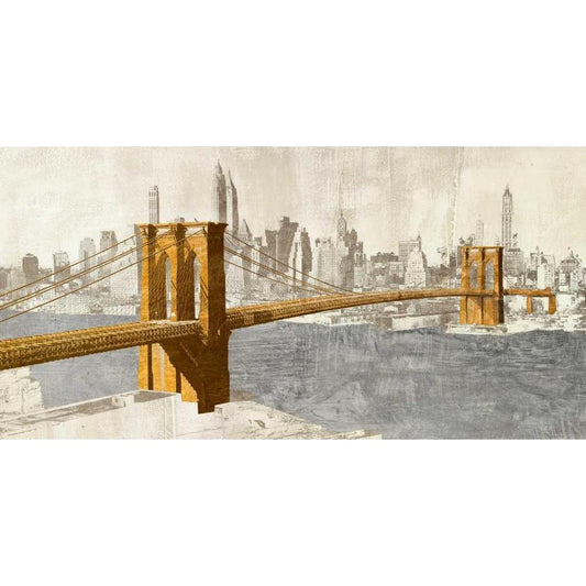 Gilded Brooklyn Bridge Black Modern Wood Framed Art Print with Double Matting by Joannoo
