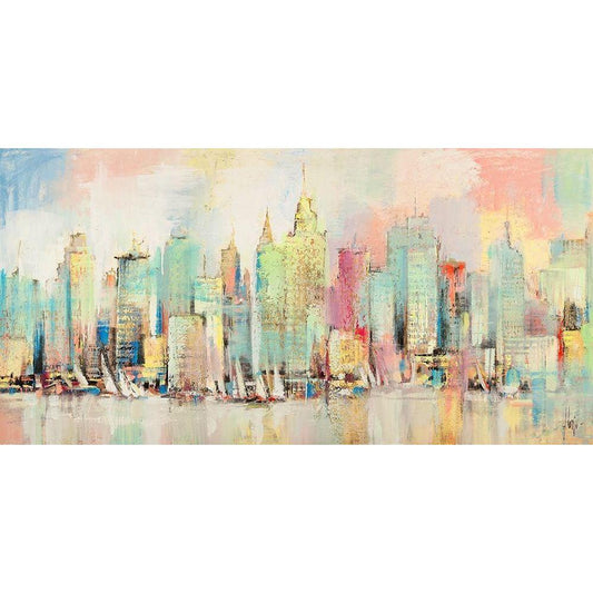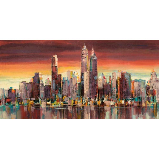 Skyline a colori Black Modern Wood Framed Art Print with Double Matting by Florio, Luigi