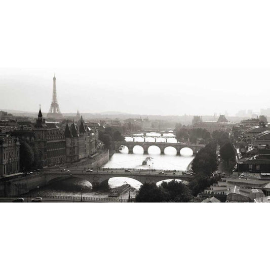 Bridges over the Seine river, Paris Black Modern Wood Framed Art Print with Double Matting by Setboun, Michel