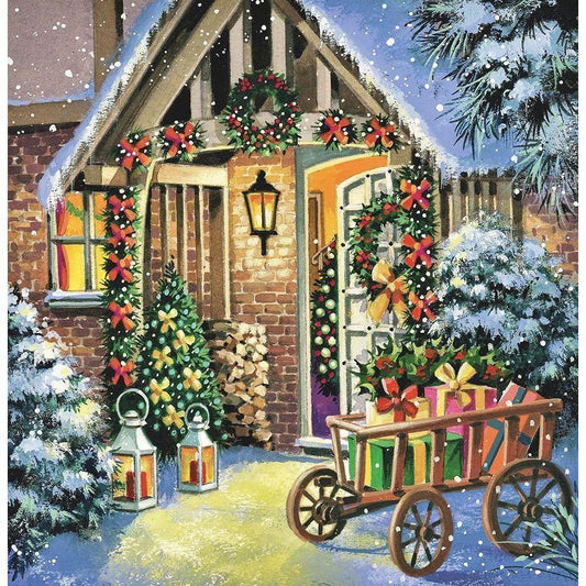 Evening Before Christmas Black Modern Wood Framed Art Print with Double Matting by P.S. Art