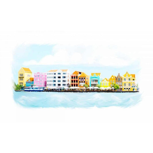 Willemstad Curacao Skyline Black Modern Wood Framed Art Print with Double Matting by Murdock, Ramona