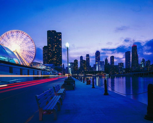 Skyline at dusk Chicago Illinois White Modern Wood Framed Art Print with Double Matting by Highsmith, CarolRegular price From $39.99 USDRegular priceUnit price per-