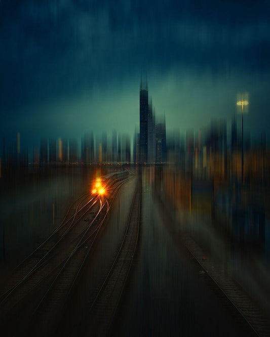 The Steel City White Modern Wood Framed Art Print with Double Matting by Zheng, Michael