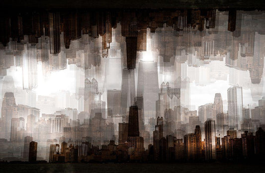 Reflections Of A Sleepless City White Modern Wood Framed Art Print with Double Matting by Kralik, Rostislav