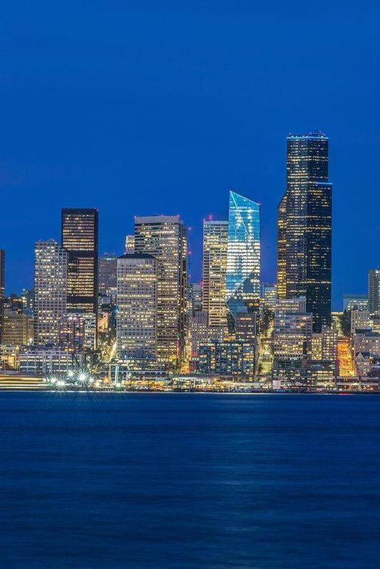Washington State-Seattle Skyline at Twilight White Modern Wood Framed Art Print with Double Matting by Tilley, Rob