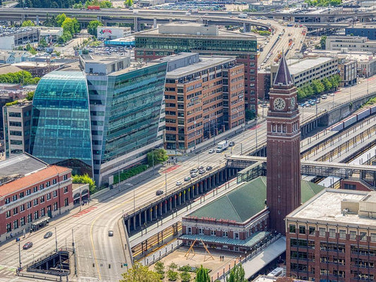WA-Seattle-King Street Station White Modern Wood Framed Art Print with Double Matting by Wild, Jamie and Judy