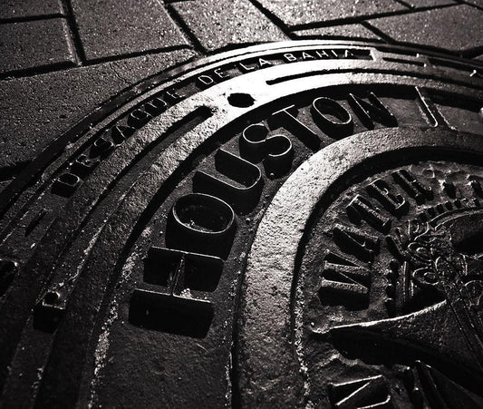 Houston-Texas manhole cover White Modern Wood Framed Art Print with Double Matting by SMO
