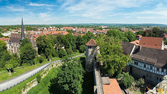 City view The medieval town Muehlhausen in Thuringia Germany White Modern Wood Framed Art Print with Double Matting by Zwick, Martin