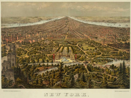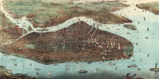 Birds-eye view of Manhattan, New York White Modern Wood Framed Art Print with Double Matting by Unknown