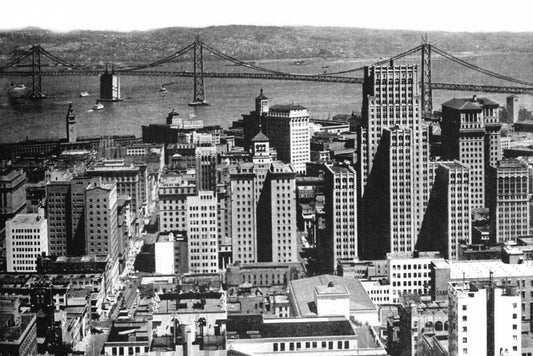 East Side of Montgomery St, San Francisco, CA White Modern Wood Framed Art Print with Double Matting by Vintage San Francisco