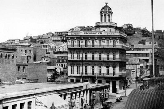 North Side of Montgomery St., San Francisco, CA White Modern Wood Framed Art Print with Double Matting by Vintage San Francisco