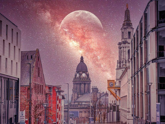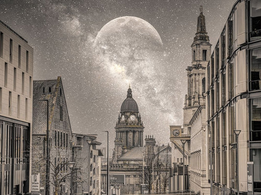 Leeds starry night White Modern Wood Framed Art Print with Double Matting by Frank, Assaf