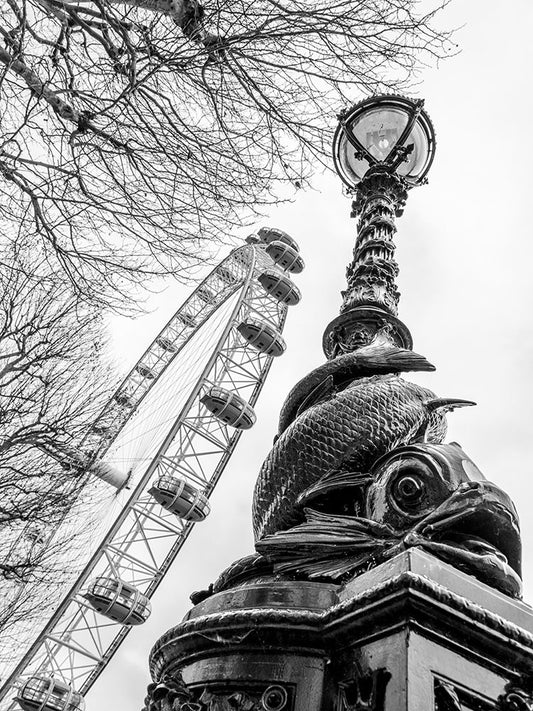 London eye and Street lamp White Modern Wood Framed Art Print with Double Matting by Frank, Assaf