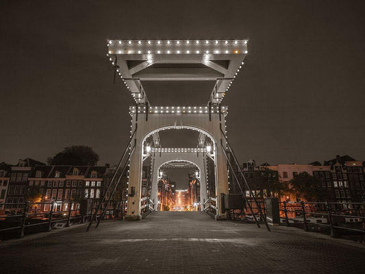 Drawbridge over canal-Amsterdam White Modern Wood Framed Art Print with Double Matting by Frank, Assaf