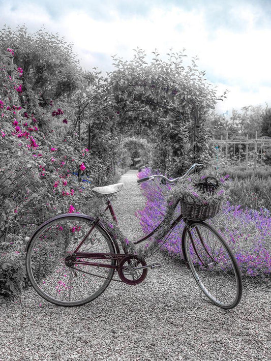 Bicycle on a garden path White Modern Wood Framed Art Print with Double Matting by Frank, Assaf