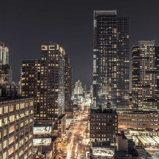 Lower Manhattan cityscape, New York White Modern Wood Framed Art Print with Double Matting by Frank, Assaf