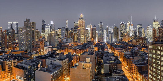 New York city stret in night White Modern Wood Framed Art Print with Double Matting by Frank, Assaf