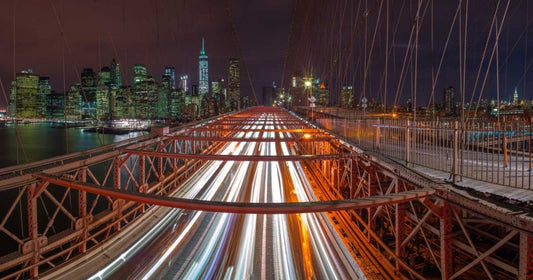 Brooklyn bridge, New York White Modern Wood Framed Art Print with Double Matting by Frank, Assaf