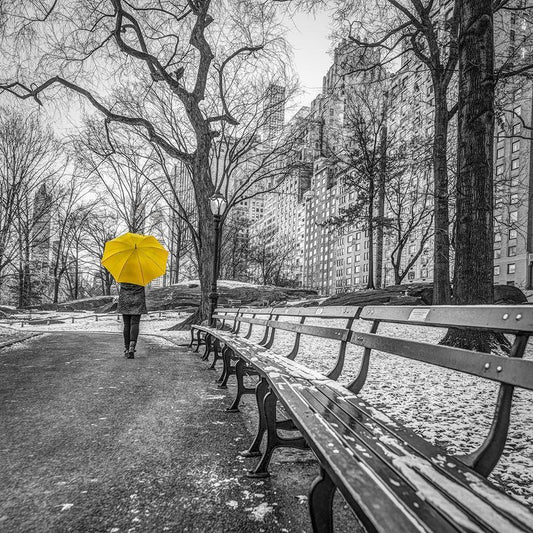 Tourist on pathway with Yellow umbrella at Central park-New York White Modern Wood Framed Art Print with Double Matting by Frank, Assaf