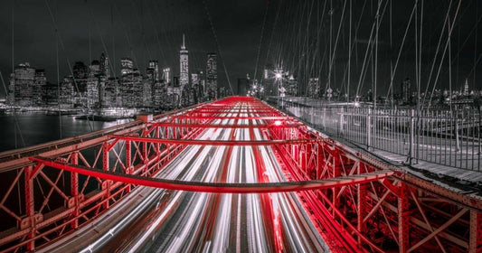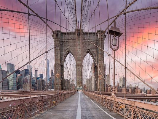 Brooklyn bridge, New York White Modern Wood Framed Art Print with Double Matting by Frank, Assaf