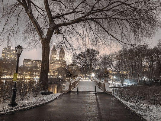 Evening view of Central park-New York White Modern Wood Framed Art Print with Double Matting by Frank, Assaf