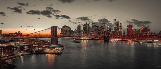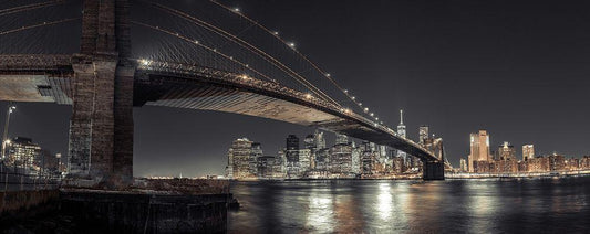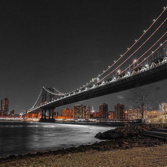 Manhattan bridge and New York city skyline White Modern Wood Framed Art Print with Double Matting by Frank, Assaf