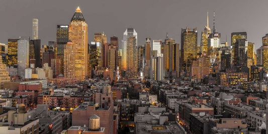 Panoramic view of Lower Manhattan skyline from Central park, New York White Modern Wood Framed Art Print with Double Matting by Frank, Assaf
