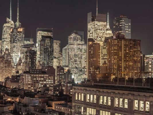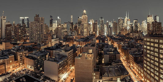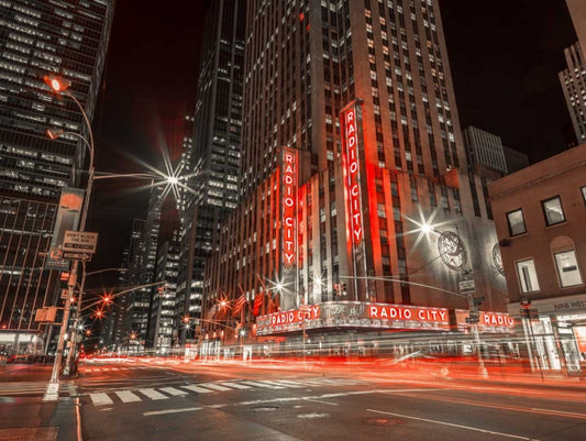 New York city stret in night White Modern Wood Framed Art Print with Double Matting by Frank, Assaf