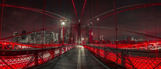 Evening view of Manhattan skyline from Brooklyn bridge White Modern Wood Framed Art Print with Double Matting by Frank, Assaf