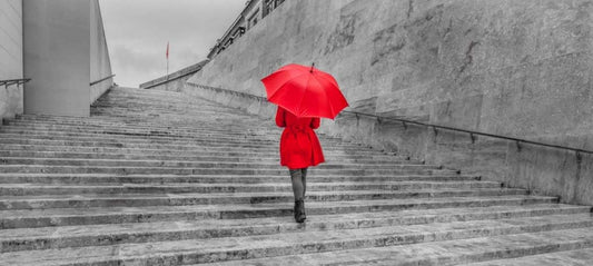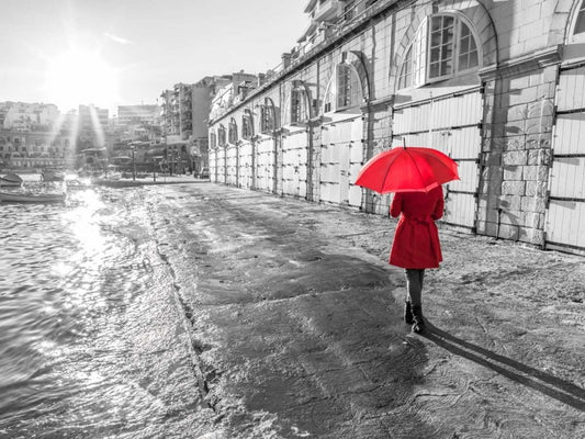 Tourist with red umbrella, Malta White Modern Wood Framed Art Print with Double Matting by Frank, Assaf