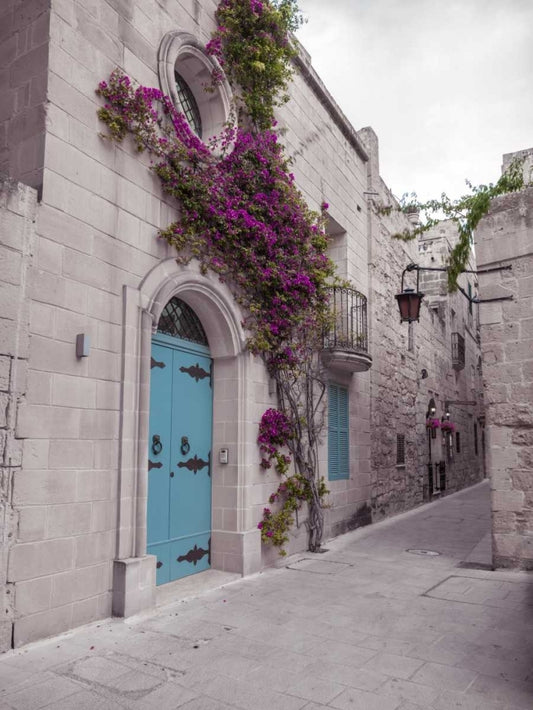 Traditional houses on narrow lanes of Mdina, Malta White Modern Wood Framed Art Print with Double Matting by Frank, Assaf
