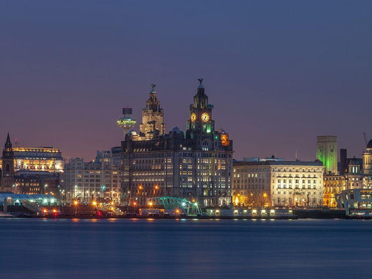 Liverpool city skyline across the River Mersey, UK,FTBR-1871 White Modern Wood Framed Art Print with Double Matting by Frank, Assaf