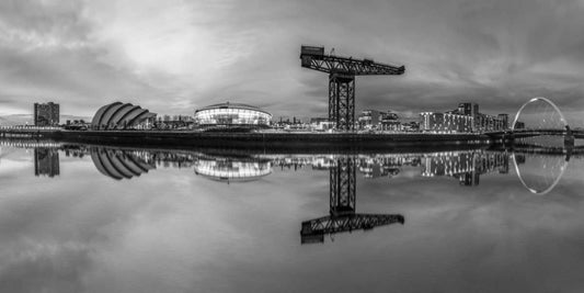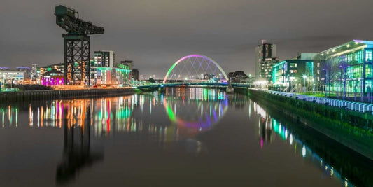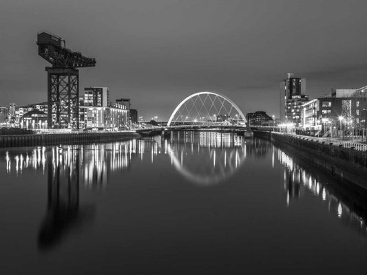 View along the river Clyde at night-Glasgow White Modern Wood Framed Art Print with Double Matting by Frank, Assaf