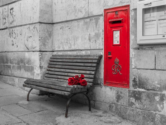 Bunch of roses on a bench, Birgu, Malta White Modern Wood Framed Art Print with Double Matting by Frank, Assaf