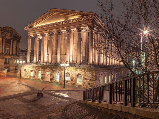 Famous Chamberlain square during night, Birmingham, UK White Modern Wood Framed Art Print with Double Matting by Frank, Assaf