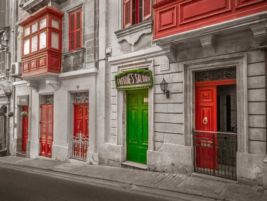 Traditional maltese house in Birgu, Malta White Modern Wood Framed Art Print with Double Matting by Frank, Assaf