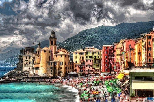 Camogli White Modern Wood Framed Art Print with Double Matting by Bolokofsky, Ronald