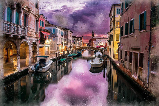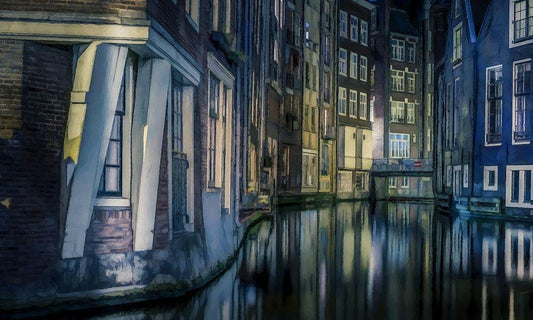 Calm Night On the Canal White Modern Wood Framed Art Print with Double Matting by Bolokofsky, Ronald