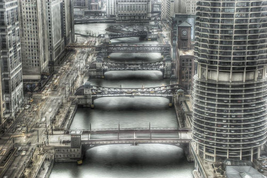 Chicago Bridges White Modern Wood Framed Art Print with Double Matting by Bolokofsky, Ronald