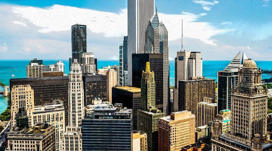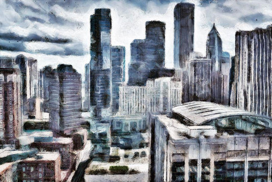 Chicago Buildings White Modern Wood Framed Art Print with Double Matting by Bolokofsky, Ronald