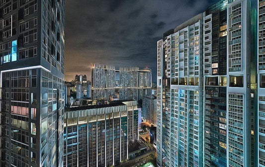 City Lights II White Modern Wood Framed Art Print with Double Matting by Bolokofsky, Ronald