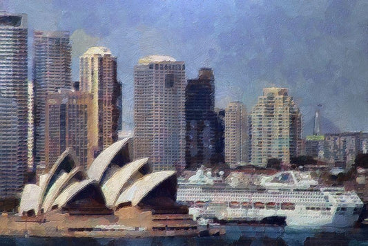 Sydney Harbor White Modern Wood Framed Art Print with Double Matting by Bolokofsky, Ronald