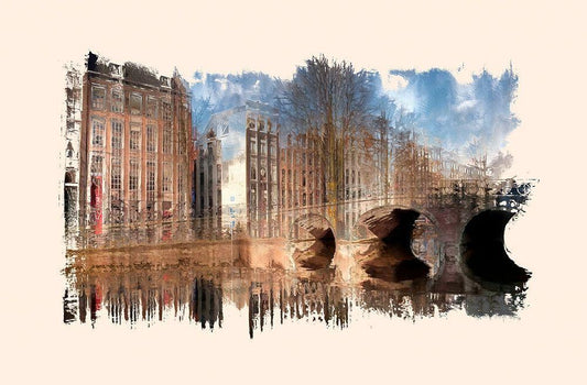 Amsterdam Reflections I White Modern Wood Framed Art Print with Double Matting by Bolokofsky, Ronald