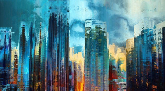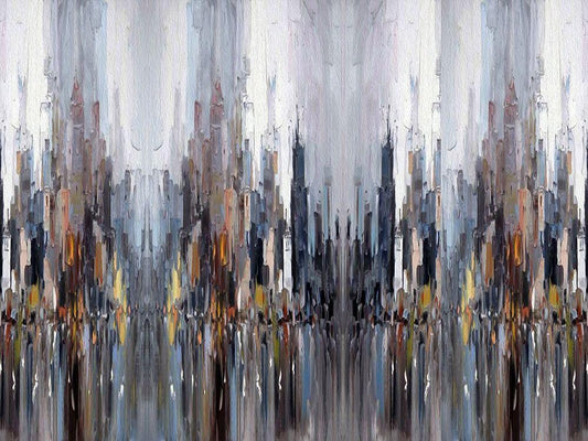 Metro Skyline White Modern Wood Framed Art Print with Double Matting by Bolokofsky, Ronald