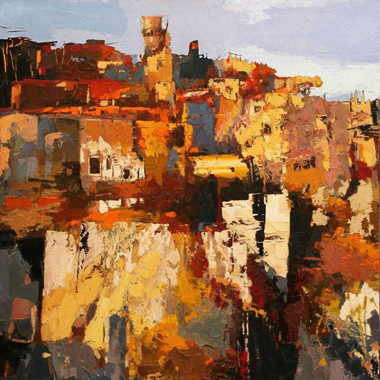 Hilltop Village II White Modern Wood Framed Art Print with Double Matting by Bolokofsky, Ronald