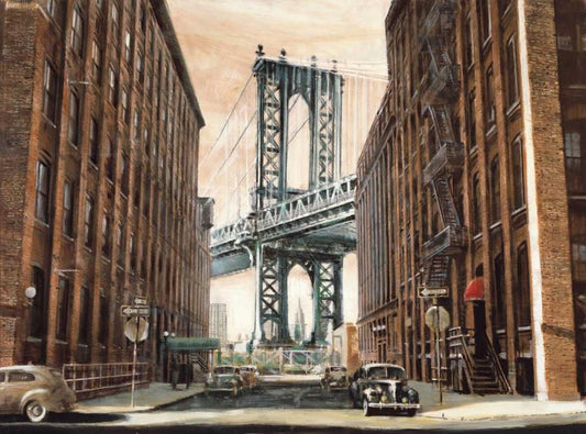 View to the Manhattan Bridge White Modern Wood Framed Art Print with Double Matting by Daniels, Matthew