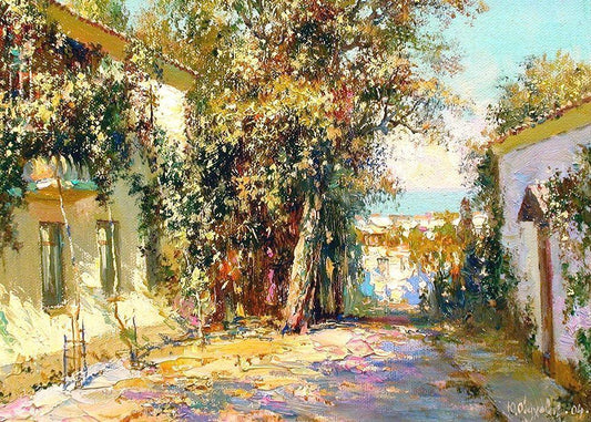 Street in Feodosia White Modern Wood Framed Art Print with Double Matting by Obuchovsky, Yury