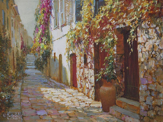 Street in Provence White Modern Wood Framed Art Print with Double Matting by Obuchovsky, Yury